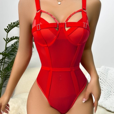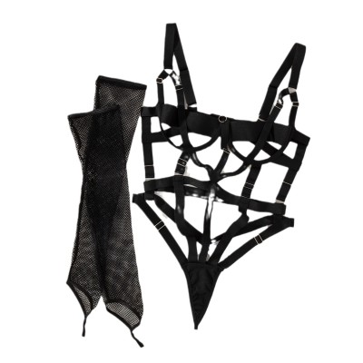 欧美爆品女装跨境货源新款复杂工艺绑带交叉接拼情趣连体衣26969