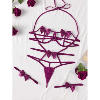 欧美万圣节肥码大码性感情趣内衣套装女镂空内衣挂脖蝴蝶结27311