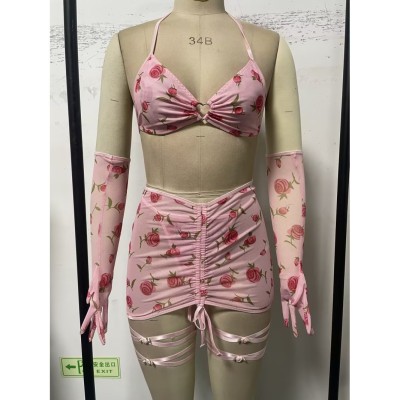 厂家直销纯欲挂脖系带绑腿可爱露背泳衣情趣套装30937